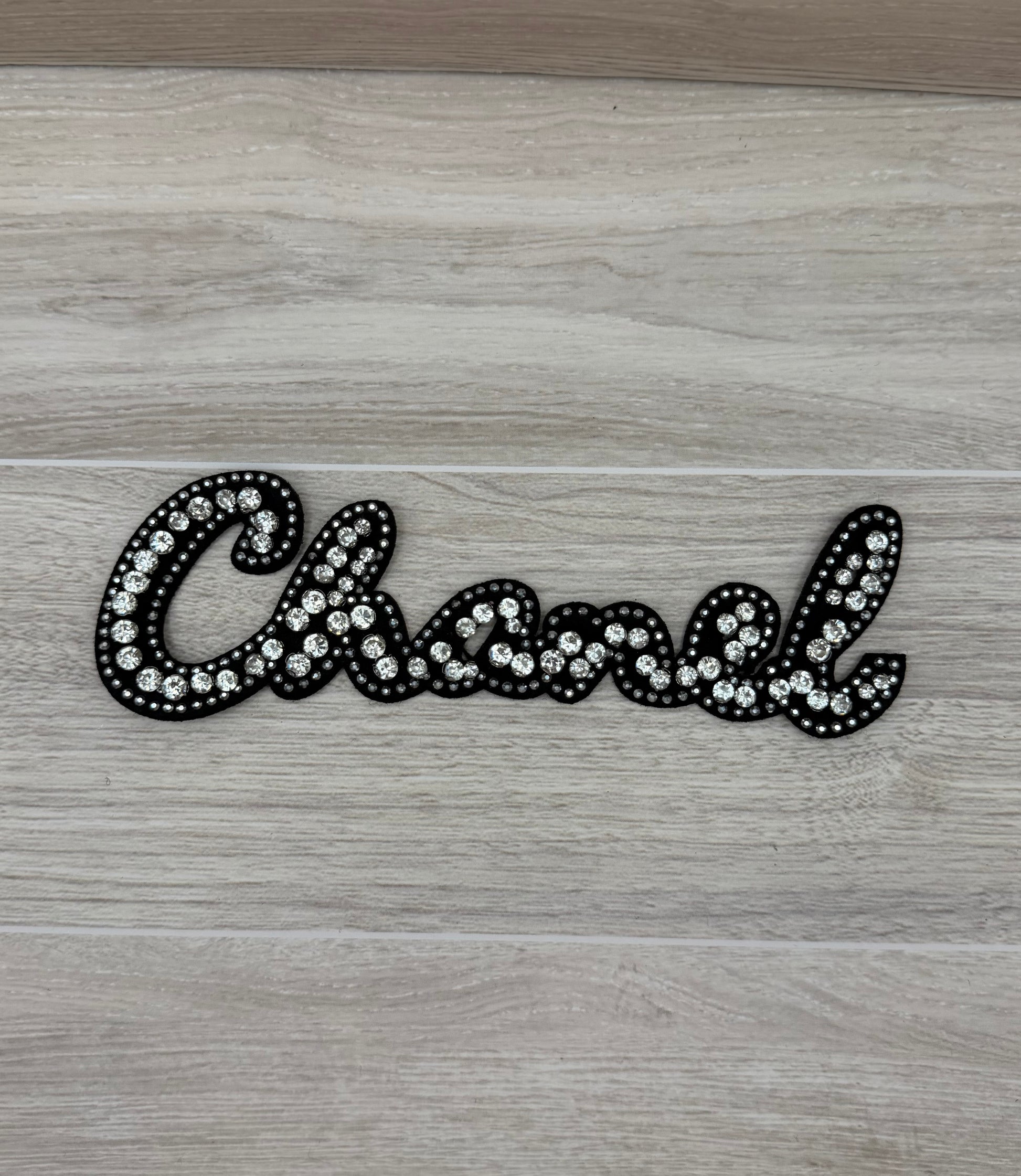 Black Rhinestone Chanel Script Sew-On Patch | Embellished Letter Appliqué