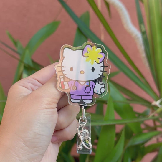 Purple Kawaii ID Badge Reel for Nurses & Healthcare Worker ( Alligator Clip )